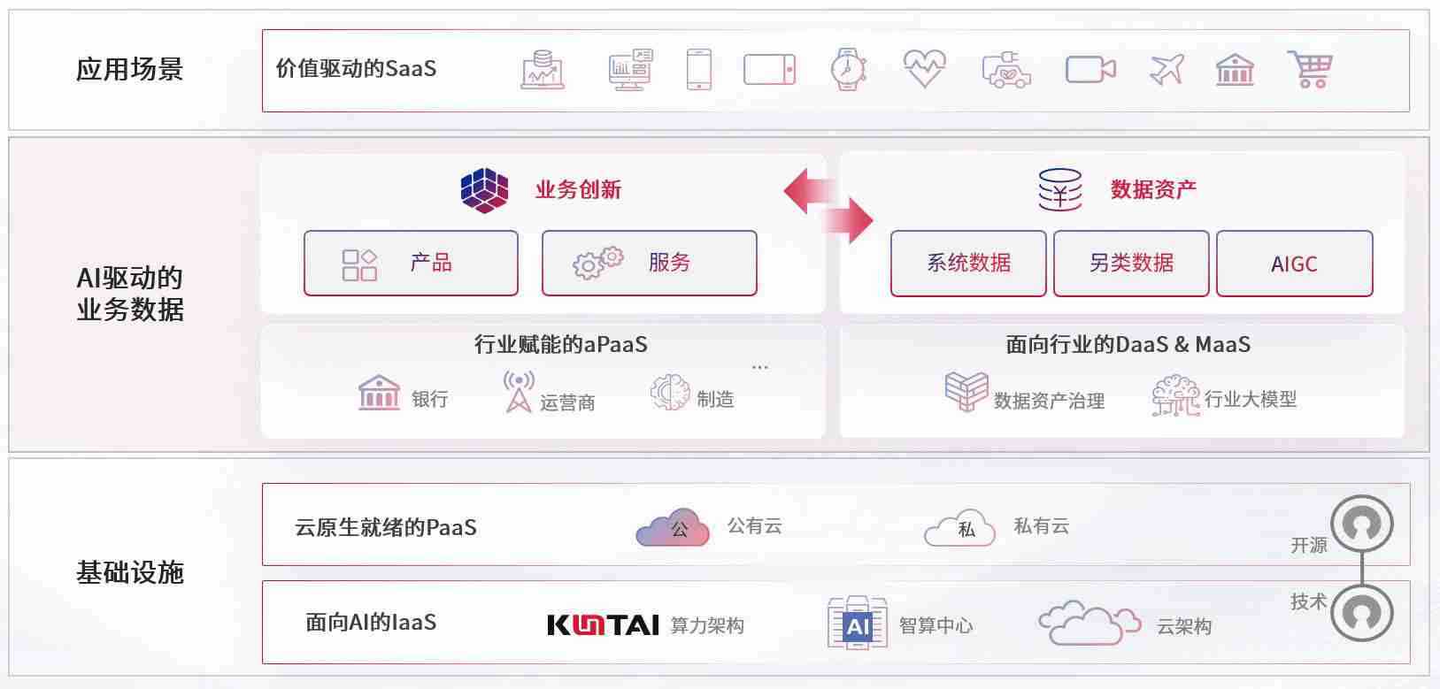 数字时代,,围绕企业数字化转型的关键要素,,GGPoker数码开创性的提出数云融合战略和技术体系框架,,,,着力在云原生、、、数字原生、、、、AI原生和信创产业上架构产品和服务能力,,为处在不同数字化转型阶段的快消零售、、、、汽车、、、金融、、、医疗、、政企、、、教育、、、运营商等行业客户提供泛在的敏捷IT能力和融合的数据驱动能力,,,构建跨界融合创新的数字业务场景和新业务模式,,,助力企业级客户建立面向未来的核心能力和竞争优势,,,,全面推动社会的数字化、、、智能化转型升级。。。。